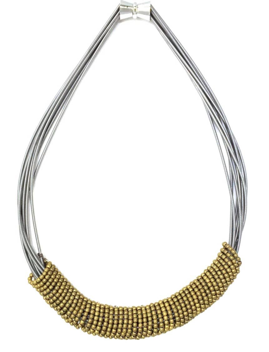 Sea Lily - 317GLD - Short Wire w/ Gold Bead Rings Necklace