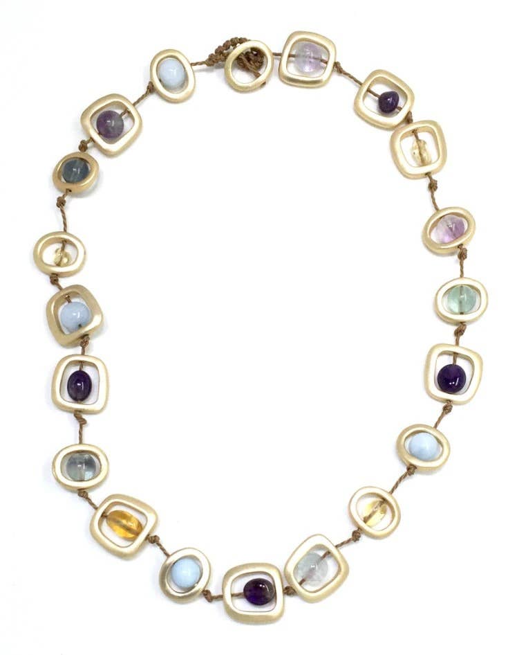 Sea Lily - 410 - Gold Geo with Mixed Natural Stones Necklace