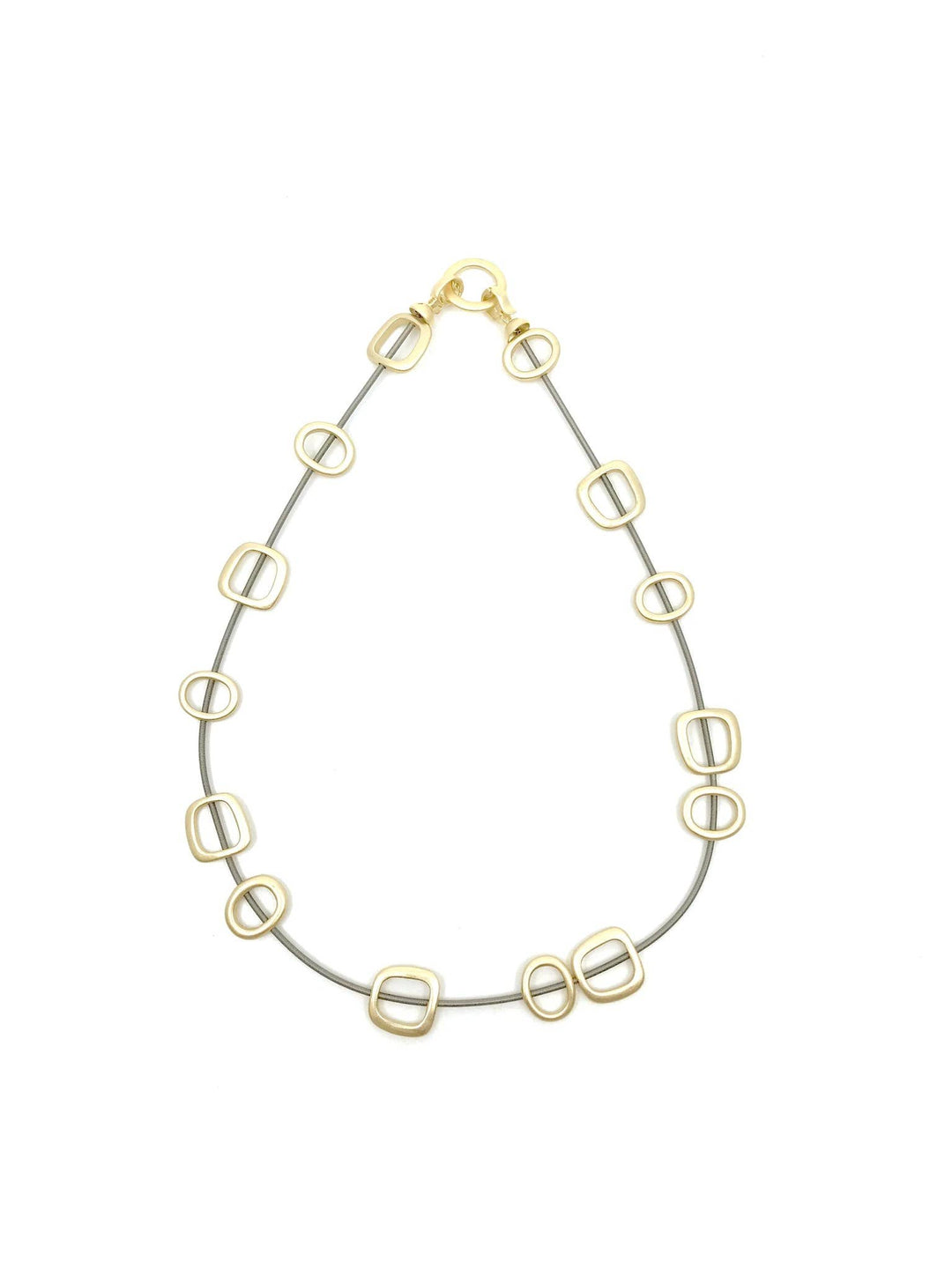 Sea Lily - 323GLD - Short Wire Necklace w. Gold Squares & Metal Clasp